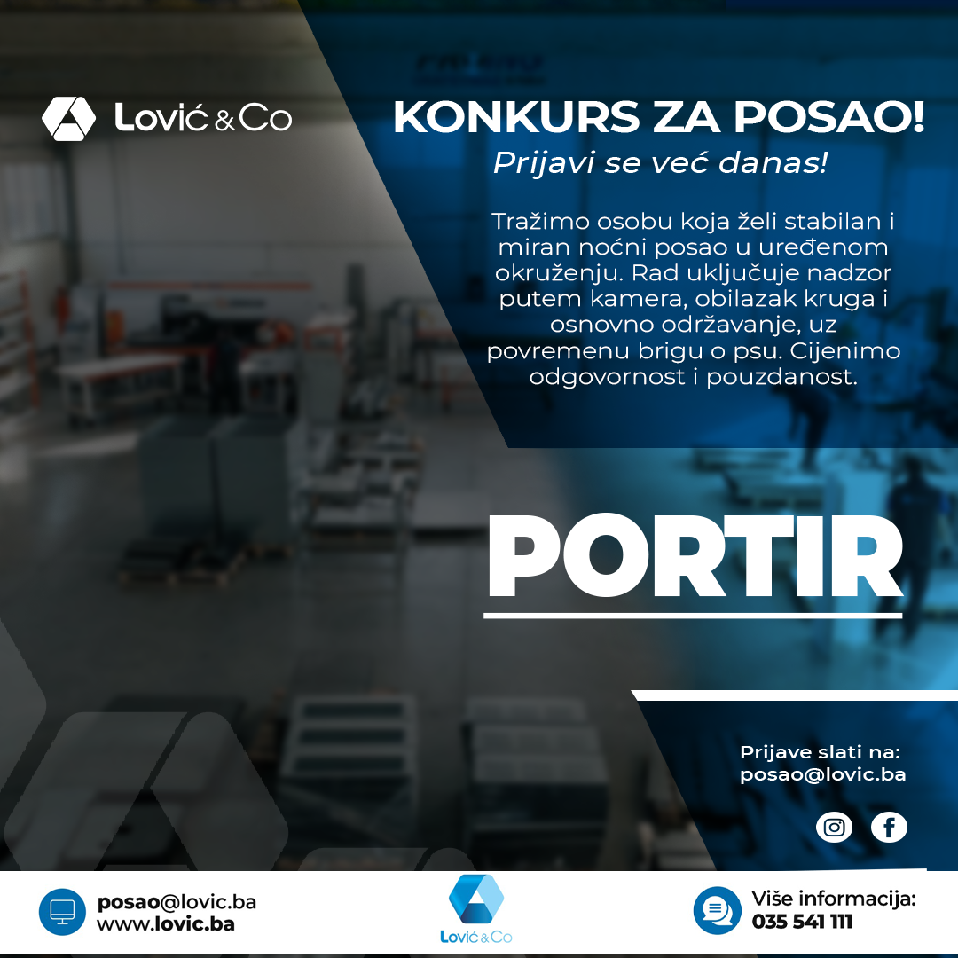 Zainteresovani kandidati mogu poslati prijavu i kratku biografiju na e-mail: posao@lovic.ba